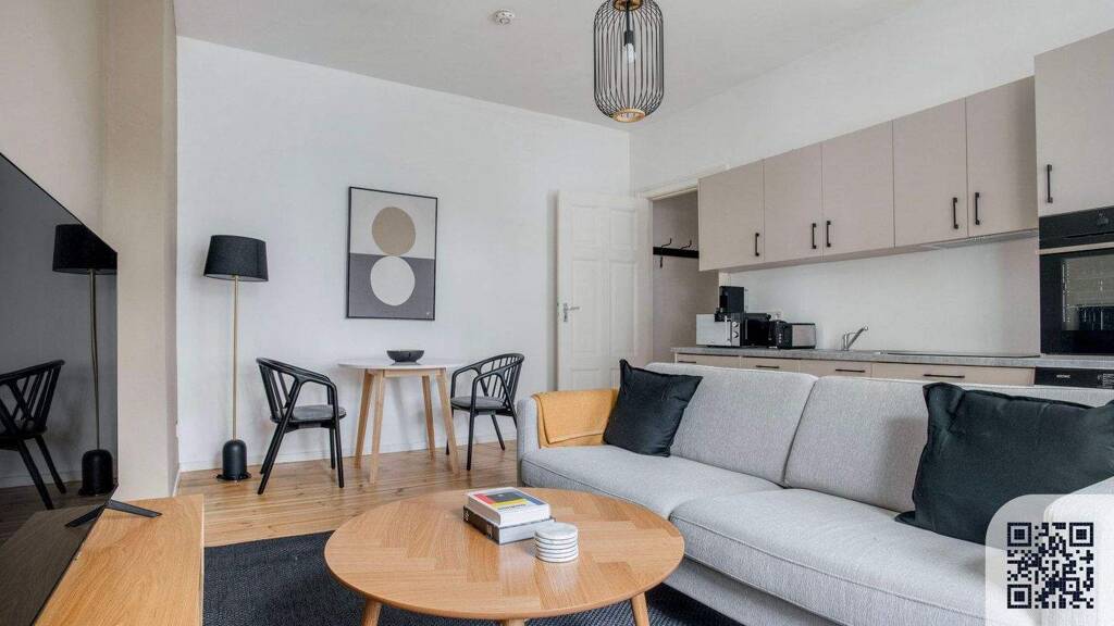 Wie bei jeder Blueground-Wohnung, findest du bei diesem 2-Zimmer-Objekt sorgfältig gestaltete Räumlichkeiten mit tollen Möbeln und einer voll ausgestatteten Küche vor. Und dank unserer hochqualitativen Matratzen hast du die Gewissheit, dich immer wie zu Hause zu fühlen. Wenn du dann für ein wenig Spaß bereit bist, kannst du dich von der Stimmung auf Berliner Straßen mitreißen lassen oder mit dem hochwertigen drahtlosen Lautsprecher oder Smart-TV das Entertainment zu dir nach Hause holen. Diese Wohnung verfügt über .