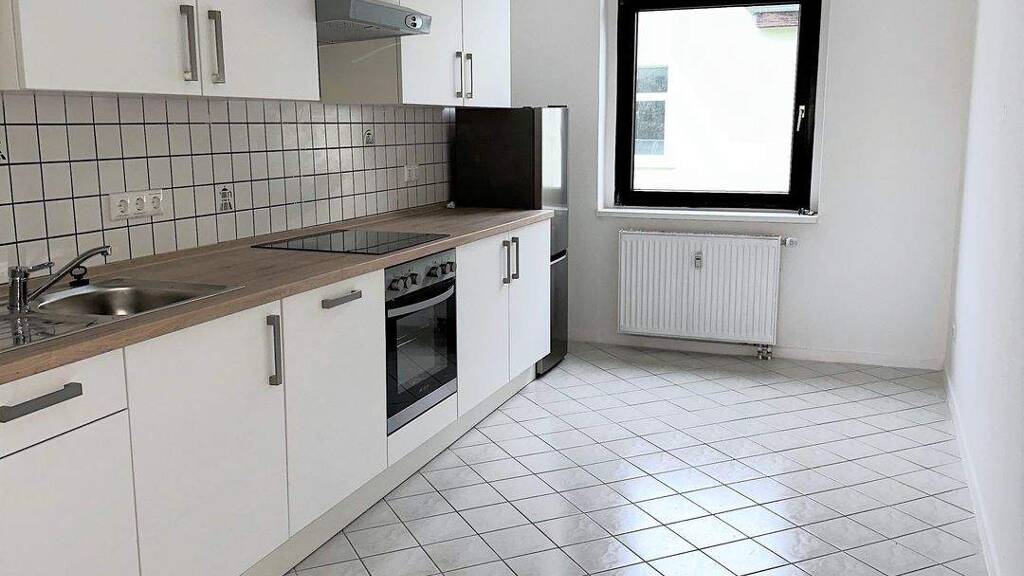 - 2 helle Wohn-, Schlafzimmer - große Küche mit Fenster und Einbauküche (+ 40,00 € / Monat) - Laminat, Fliesen - Tageslichtbad mit Wanne, Dusche