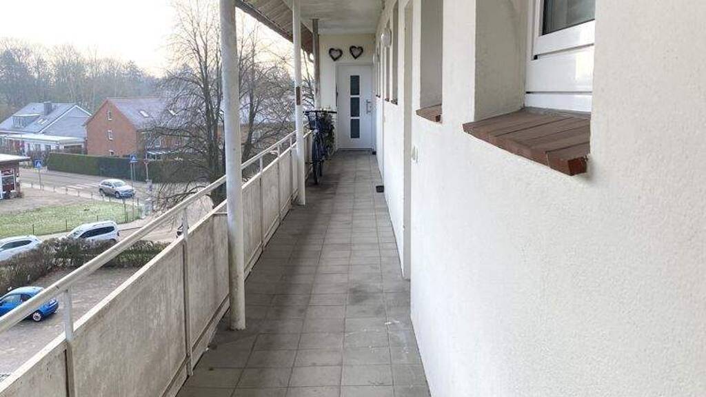 Die Wohnung , die in der 3. Etage liegt, befindet sich in einer zentralen, ruhigen und verkehrsgünstigen Lage von Kücknitz. Die Laubengänge dienen auch als Ersatz für den Balkon. Eine Busanbindung ist fast vor der Haustür.