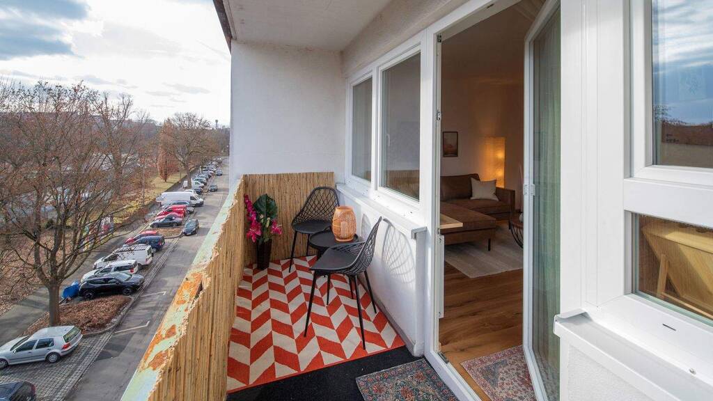 Fully furnished apartment at the demanded area of St. Johannis with great sight to Westbad and Pegnitz riverside from the sunny balcony.