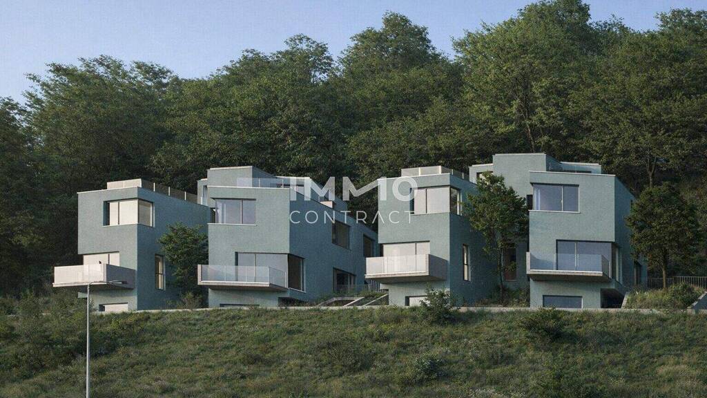 Das Projekt umfasst insgesamt zehn moderne Doppelhaushälften, die durch ein klar gegliedertes Wohnkonzept und großzügige Freiflächen überzeugen. Balkone und Terrassen schaffen wertvolle Rückzugsorte im Freien und unterstreichen den offenen, lichtdurchfluteten Charakter der Häuser. Die harmonische Architektur fügt sich dabei elegant in die Hanglage ein und eröffnet attraktive Ausblicke Richtung Donau.