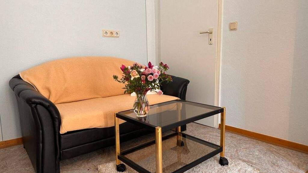 Die Wohnung befindet sich im EG eines freistehenden, dreistöckigen Hauses. Die ca. 36 m² große Wohnung umfasst zwei Zimmer: ein Schlafzimmer mit ein einzel Bett, ein Wohnzimmer mit Pantryküche, ein Tageslicht Bad und Balkon.