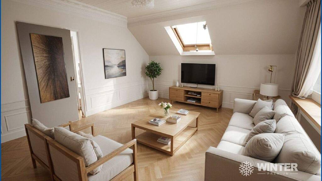 Die Wohnung verfügt über Laminatboden in der Küche, der aufgrund des renovierungsbedürftigen Zustands ebenso wie weitere Bodenflächen erneuert werden sollte. Die Wohnräume profitieren von einer klassischen Dachgeschossarchitektur mit Dachflächenfenstern, von denen die meisten für einen zeitgemäßen Standard ausgetauscht werden sollten. Die jüngst erfolgte Umstellung auf Wärmepumpentechnik bildet einen wesentlichen Vorteil im Hinblick auf Energieeffizienz und zukünftige Betriebskosten. Der Garten des Mehrfamilienhauses ist in feste Bereiche unterteilt, sodass jede Wohnung einen eigenen Nutzungsanteil besitzt.