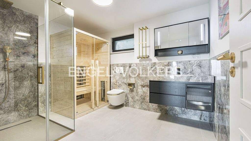 Insgesamt stehen 7 Zimmer zur Verfügung, darunter 3 großzügige Schlafzimmer sowie zusätzlich 4 hochwertig ausgestattete Badezimmer, die höchsten Wohnkomfort garantieren. Die private Sauna sowie der Außenpool unterstreichen den Wellness-Charakter und verwandeln das Anwesen in einen persönlichen Spa-Rückzugsort.