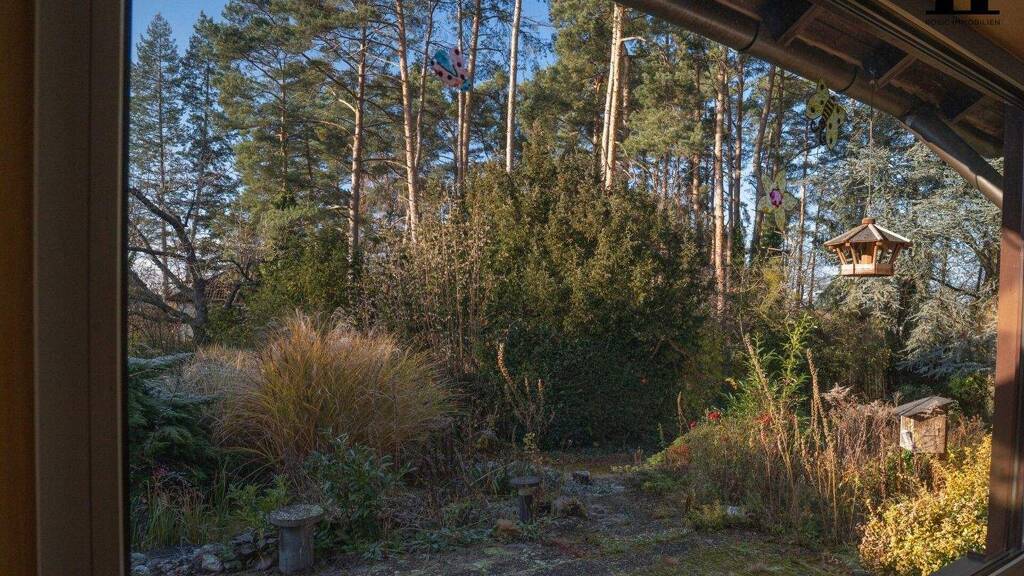 Die rund 150 m² Wohnfläche bieten fünf Zimmer, deren Fenster die Waldkulisse wie lebendige Gemälde einrahmen und jedem Raum eine besondere Atmosphäre verleihen. Das Haus ist renovierungsbedürftig und bietet damit die ideale Grundlage für eine individuelle, moderne Neugestaltung. Ein großzügiger Keller eröffnet zusätzlichen Nutz- und Hobbyraum. Drei Garagen bieten komfortable Stellflächen und praktischen Stauraum.