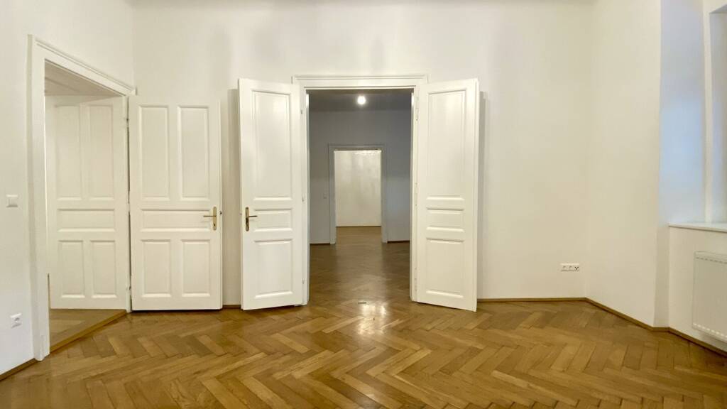 Stilvoller Altbauflair mit hohen Decken und Fischgrätparkett