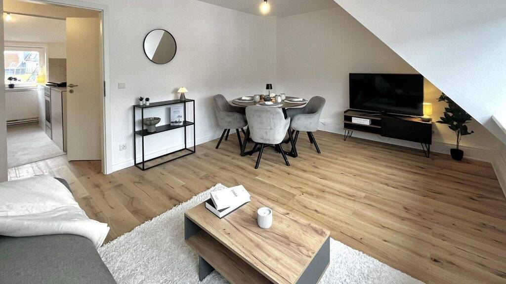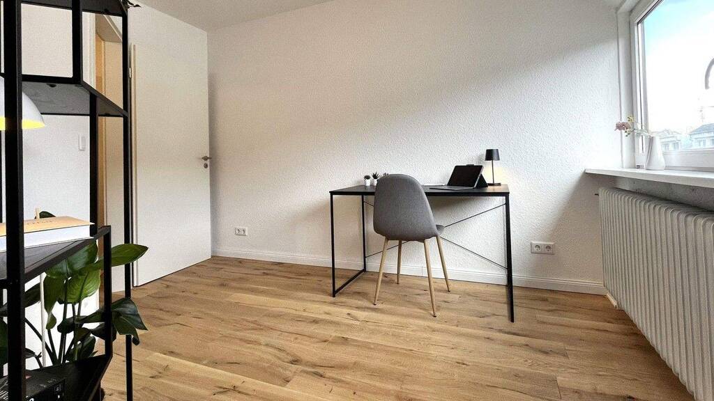 Ein besonderes Highlight ist das hochwertige Echtholzparkett aus Eiche, das den Wohnräumen eine warme und elegante Atmosphäre verleiht. Das modern gestaltete Badezimmer wurde ebenfalls vollständig erneuert und verfügt über eine großzügige Regendusche.