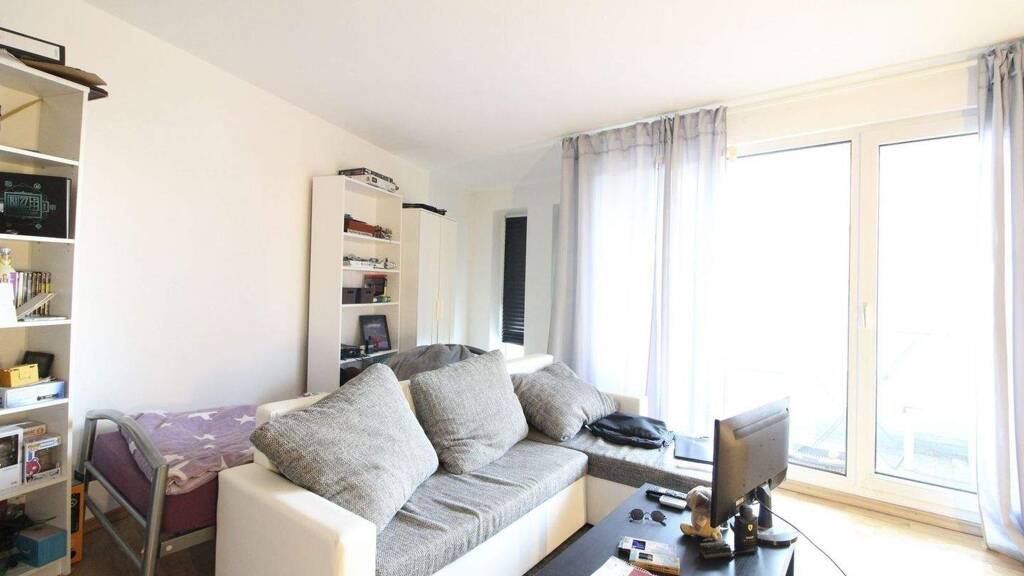 Die Wohnung befindet sich im 1. Obergeschoss eines gepflegten Mehrfamilienhauses aus dem Jahr 1993. Das Objekt ist mit einem Aufzug ausgestattet, die Wohnungen sind über Laubengänge zu erreichen. Auf einer Wohnfläche von ca. 47,81 m² bietet die Wohnung ein gut geschnittenes Zimmer, das den Wohn- und Schlafbereich sowie die Küche vereint. Ergänzt wird der Grundriss durch ein Tageslichtbad mit Dusche sowie eine praktische Einbauküche. Ein Balkon lädt zu entspannten Stunden im Freien ein.