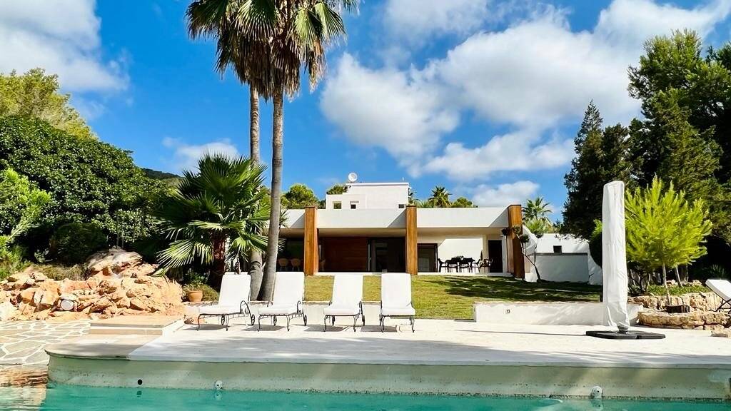 Diese wunderschöne Villa in San José liegt nur wenige Minuten von Ibiza entfernt, mit spektakulärem Blick auf Salinas und die umliegenden Berge. Das modern eingerichtete Haus bietet große Fenster, mit viel natürlichem Licht. Das Haupthaus hat einen großen und einladenden Wohn-/Essbereich mit Kamin, geräumiger, voll ausgestatteter Küche sowie einen Zugang zur Außenterrasse durch Glasschiebetüren. Es bietet insgesamt 4 Doppelzimmer mit eigenem Bad. Alle Schlafzimmer verfügen über große Doppelbetten, Klimaanlage warm/kalt und Einbauschränke. Auf dem Grundstück befindet sich ein kleines Nebengebäude, das komplett möbliert ist und ein Schlafzimmer mit Doppelbett, ein Badezimmer und eine voll ausgestattete Küche mit Essbereich hat. Das Anwesen ist sehr gepflegt, Swimmingpool mit umlaufender Terrasse und Grillplatz, Rasenflächen und eine große Auffahrt. Diese Villa befindet sich in einer ausgezeichneten Lage, alles ist in der Nähe, nur wenige Minuten vom Flughafen Ibiza sowie 15 Minuten von Ibiza-Stadt und den berühmtesten Stränden wie Salinas, Es Cavallet und Cala Jondal entfernt. Großer Garten mit Pflanzen und Schwimmbad von 90 m², großer Parkplatz, Waschsalon. Badezimmer außerhalb des Pools.