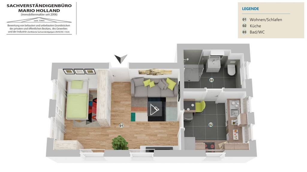 Alle Angaben im Exposé beruhen auf den Informationen und übergebenen Unterlagen der Vermieter bzw. Dritter. Eine Haftung für die Angaben im Exposé kann deshalb durch den Makler nicht übernommen werden. Unsere Angebote sind freibleibend und unverbindlich. Zwischenvermietung und Preisänderungen bleiben ausdrücklich vorbehalten.