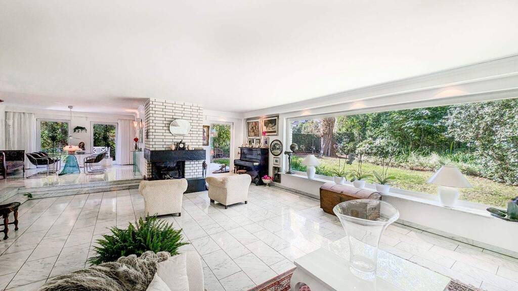 - Italienischer weißer Marmor, französisches Parkett, Poolwanne und Dusche im Badezimmer mit großer Fensterfront