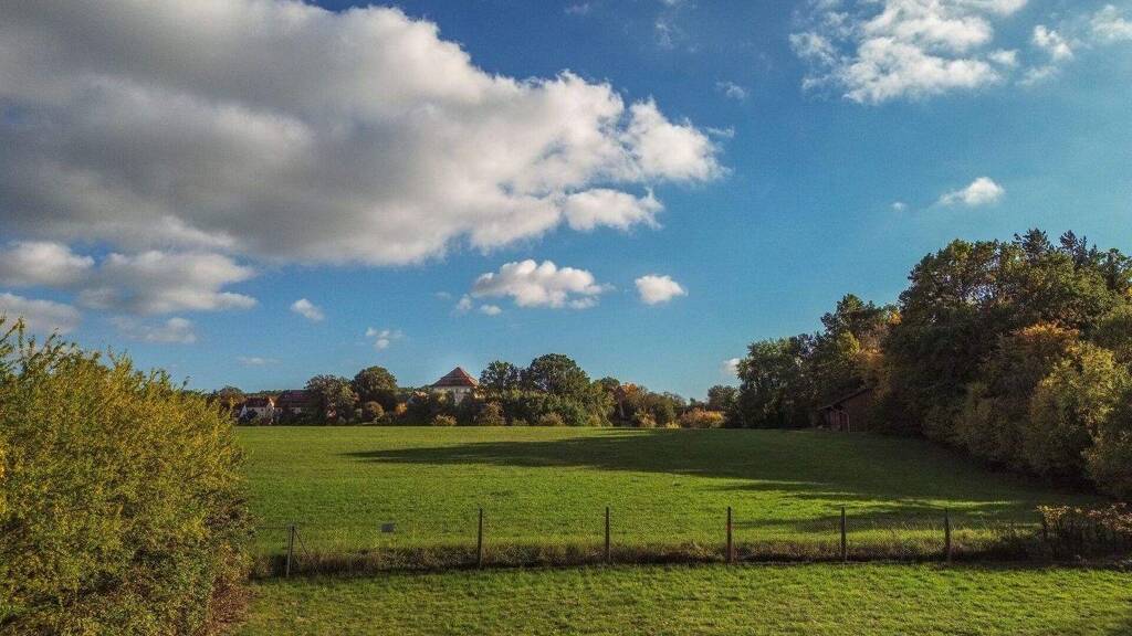 Das Ensemble umfasst zwei Grundstücke für eine Doppelhausbebauung (jeweils 272 m²), das Bestandsgrundstück mit ca. 547 m², das mit seinem charmanten Altbau zusätzlichen Entwicklungsspielraum bietet, sowie zwei großzügige Einfamilienhausgrundstücke mit beeindruckendem Schlossblick (ca. 610 m² und 611 m²). Die leichte Hanglage ermöglicht reizvolle Blickbeziehungen und unterstreicht den exklusiven Charakter des Areals.