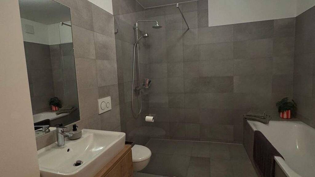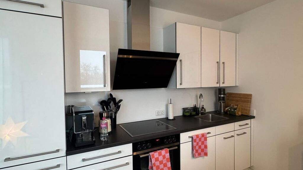 Eine hochwertige Einbauküche sowie ein schicker Waschtisch sind bereits in dem Mietpreis enthalten. Die gesamte Wohnung ist mit elektrischen Jalousien und Fußbodenheizung ausgestattet. Ebenfalls ist im Bad ist ein Waschmaschinenanschluss vorhanden.