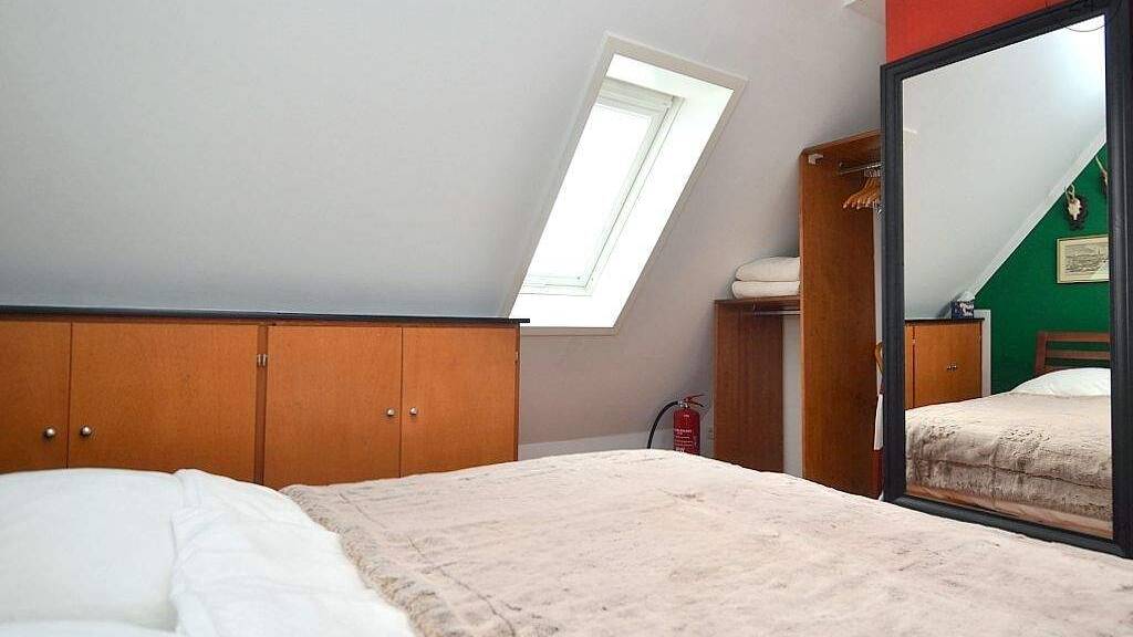 Der Schlafbereich verfügt über ein französisches Bett (1,40x2,00m), einen Einbauschrank, offenes Kleiderschranksystem und einen Spiegel.