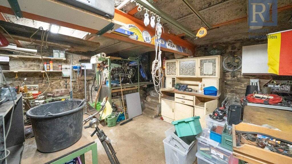 Im Kellergeschoss erwartet Sie neben einem großzügigen Kellerraum auch eine Werkstatt, die ein kleiner wahrer Traum für jeden Heimwerker ist. Sowohl durch die Werkstatt als auch durch den Kellerraum gelangen Sie auf die Straße vor dem Haus, sodass Sie Fahrräder oder Ähnliches auf direktem Weg verstauen können.
