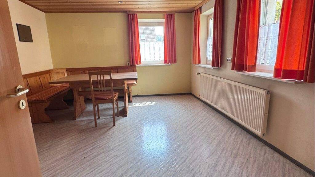 Die Gesamtwohnfläche des Hauses beträgt ca. 190m², die sich auf acht Zimmer aufteilt. Im Erdgeschoss befinden sich die Küche, das Wohnzimmer, ein großzügiges Badezimmer mit Wanne und eine separate Speisekammer. Ebenfalls auf dieser Ebene befindet sich der Heizungsraum, in den 1996 eine neue Ölzentralheizung eingebaut wurde, ein Vorraum, den man ganz nach seinen Wünschen gestalten kann.