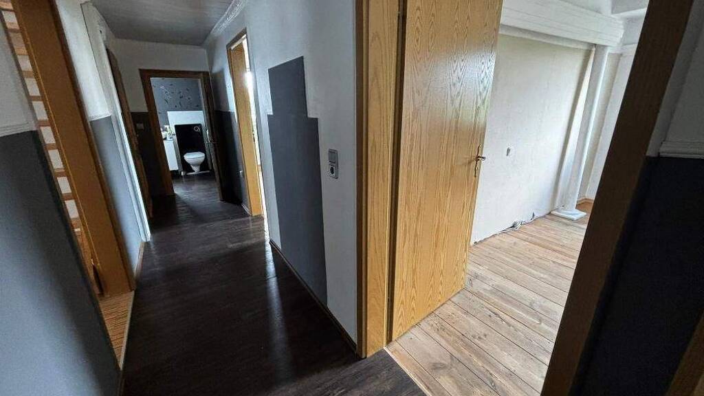 Dielenbereich, 2 Zimmer, KĂĽche mit Zugang zu ausgebautem Dachgeschoss, Tageslichtbad mi Dusche und Wanne, Abstellraum und WC