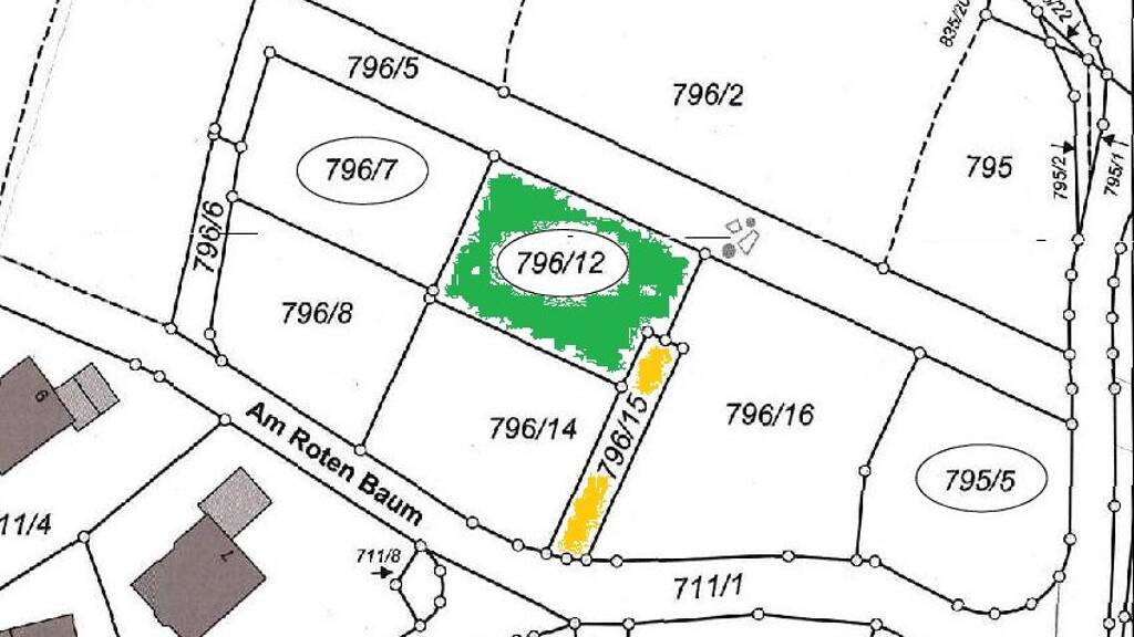 Das Grundstück mit der Flur-Nr.: 796/12 befindet sich im Neubaugebiet "Am Roten Baum" in 90518 Altdorf-Rasch.