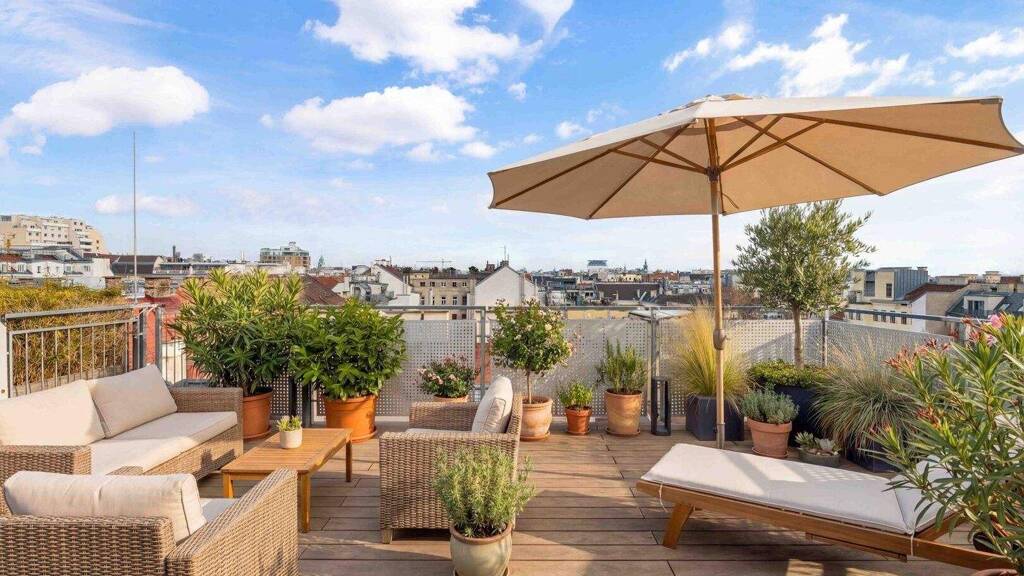 Rooftop-Wohnung über den Dächern des Siebten | 1 Min. zur Mariahilferstr. | 40m² 360°-Terrasse | Virtual Tour