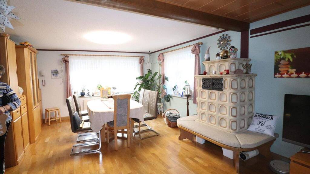 Die Wohnfläche von ca. 200 m² verteilt sich auf das 1. Obergeschoss sowie das Dachgeschoss, während das Erdgeschoss eine ehemalige Gastwirtschaft mit *ca. 100 m² Gewerbefläche beherbergt.