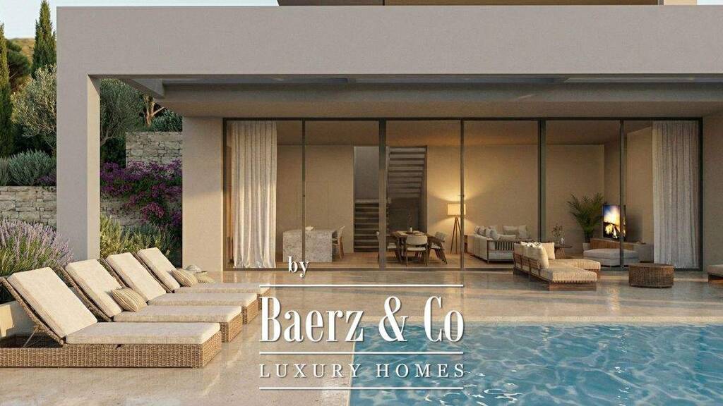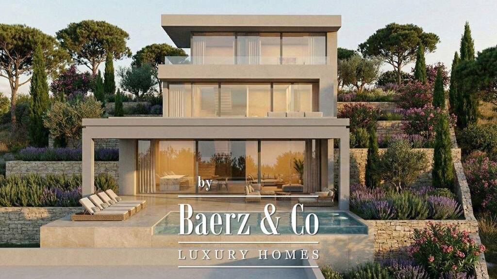 the villa will be delivered in summer 2027 as a turnkey project, currently in the design phase with a fixed budget. it includes top-of-the-range finishes: a fully equipped kitchen with dekton or similar countertops, miele or dietrich appliances, and grohe or dornbracht faucets; bathrooms with roca wall-hung fixtures, concealed faucets, and large-format ceramic tiles; 60x120 cm porcelain flooring for both interior and exterior use; and high-efficiency aluminum window frames with argon gas and uv filters. state-of-the-art aerothermal system, comprehensive home automation, a minimum of 16 photovoltaic panels with a hybrid inverter, customizable interior and exterior lighting, solid doors with high acoustic insulation, and a reinforced, high-security entrance.