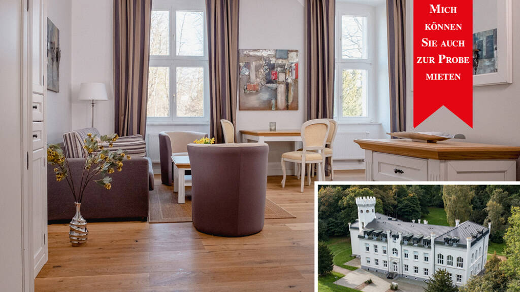 Absolute Ruhe das ganze Jahr über. Sanft im Wind wogende Buchen und Eichen. Am Horizont die blau glitzernde Ostsee. Im Frühjahr und Herbst der majestätische Auftritt der Kraniche, die auf den umliegenden Feldern für ein paar Tage Station machen. Und mittendrin die imposanten Mauern des Schlosses. Weiß leuchtende Giebel, herrschaftliche Zinnen und gotische Spitzbögen ragen in den Himmel - ein klassizistisches Meisterwerk aus der Feder des großen preußischen Baumeisters Karl Friedrich Schinkel. Wer all das einmal gesehen und erlebt hat, kommt ins Schwärmen: Hier zu wohnen, in einem echten Schloss, umgeben von nichts als Ruhe und Natur - da werden Träume wahr.