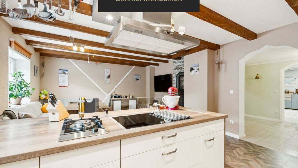 - großzügiges Wohnzimmer mit Kachelofen und Infrarotsauna - überdachte Terrasse - ruhige und naturnahe Lage mit Panoramablick - Pelletheizung aus dem Jahr 2024 - Solarthermie - Außenwanddämmung - drei Badezimmer - großzügige Wohnküche mit Holzofen - Einbauküche aus dem Jahr 2017 - Fußbodenheizung im Obergeschoss, Heizkörper im Dachgeschoss - Gegensprechanlage mit Kamera - Einliegerwohnung (ideal für Mehrgenerationenwohnen oder Vermietung) - Doppelgarage