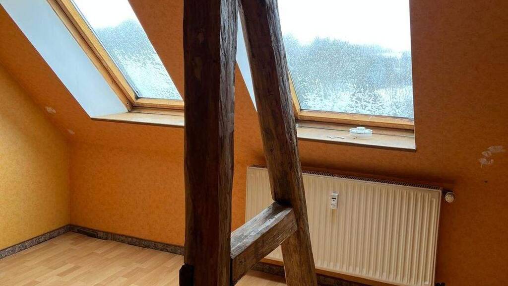 Diese charmante Dachgeschosswohnung befindet sich in einer grünen Umgebung und bietet ein großes Potenzial zur individuellen Gestaltung. Leichte Renovierungsarbeiten sind erforderlich, um den einzigartigen Charakter des Raumes voll zur Geltung zu bringen.