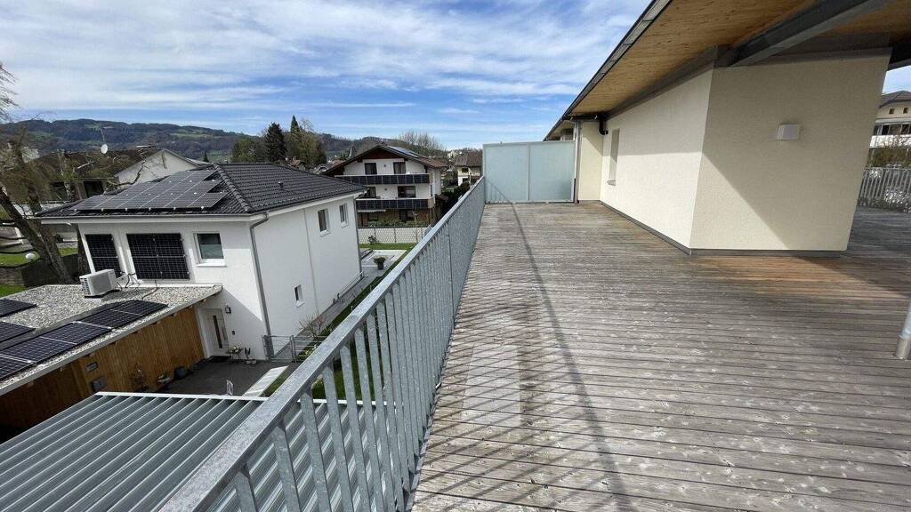 Das absolute Highlight ist die außergewöhnlich große Dachterrasse mit rund 112 m² Fläche - ein besonderer Ort zum Entspannen, Genießen und Verweilen. Von hier aus eröffnet sich ein weiter Blick über die Dächer der Nachbarschaft, bis hin zu Karren und Bildstein. Dank der idealen Westausrichtung genießen Sie hier traumhafte Sonnenuntergänge und eine perfekte Abendstimmung.