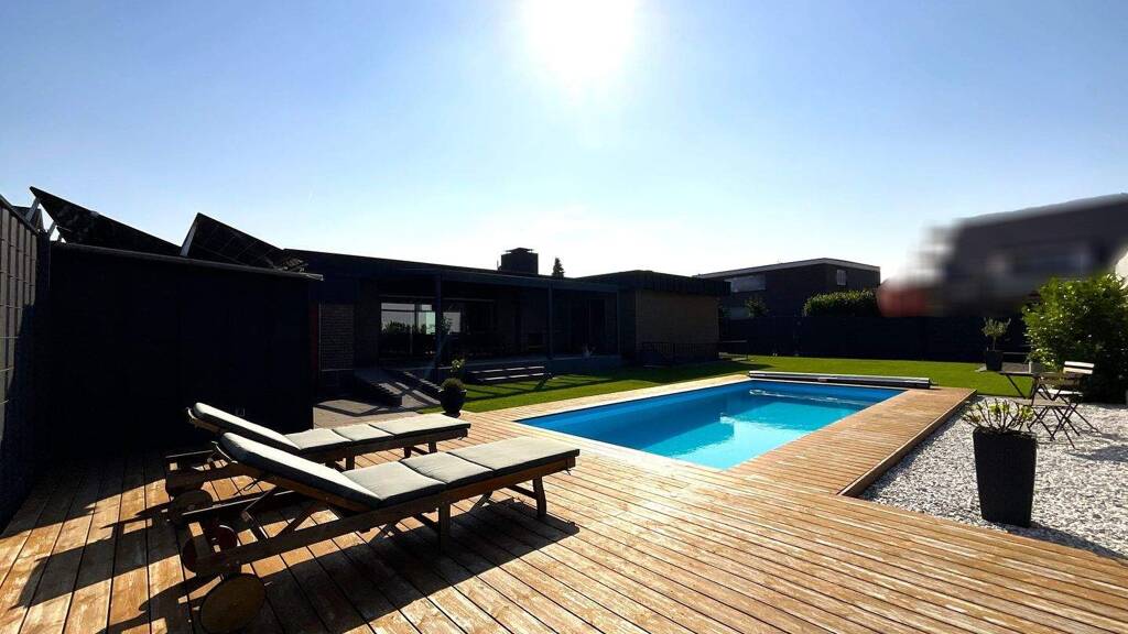 Entspannung finden Sie im eigenen Wellnessbereich mit Sauna sowie im beheizbaren Außenpool, der mittels Wärmepumpe beheizt werden kann. Unterstützt wird die Pooltechnik und die Wärmepumpe durch ein Balkonkraftwerk (0,2 kWp, Baujahr 2024) - speziell zur Unterstützung der Pooltechnik.