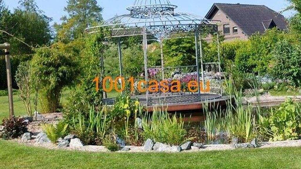 Eine Oase der Ruhe, ist der im hinteren Garten eingebrachte Teich, mit angegliedertem Freisitz.