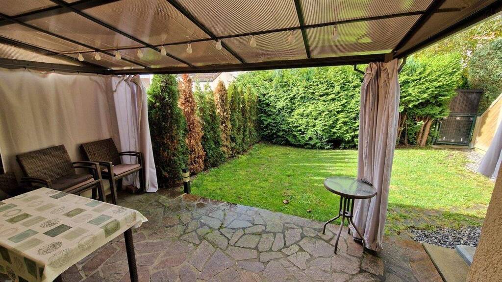 Küche mit Fenster neuwertige, moderne Einbauküche inklusive großzügiger Flur Tageslichtbad mit Dusche und Wanne Hobbyraum im Untergeschoss mit Stromanschluss und schönen Parkettboden; (es besteht die Möglichkeit für einen Stromheizkörper) zusätzlicher gefliester, gemauerter Kellerraum dreifach verglaste Kunststofffenster 2016 eingebaut 2016 Außenfassade und innen die Wohnung neu gestrichen elegantes dunkles Laminat in Eichenoptik Fliesen im Bad und in der Küche blickgeschützter, eingewachsener großer eigener "Privat"Garten mit Gartenhaus, eingezäunt, extra Gartentürchen; nur zwei Wohnungen im ganzen Haus! mit Natursteinen geflieste, geschützte (verlängerter Wetterschutz, wie Freisitz) Sonnenterrasse im EG des Hauses integrierter Carport, ähnlich wie offene Garage, mit extra Höhe und Überlänge, sowie Stromanschluss gepflegte Gaszentralheizung vermietet seit 15.02.2025 (Kaltmiete 620,00 EUR/mtl.)