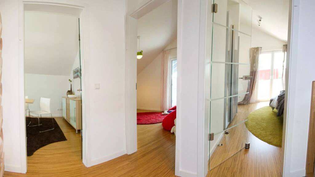 Für Behaglichkeit und Wertbeständigkeit sorgen zusätzlich die optimierte Dämmung, das Beplankungspaket sowie eine Luftdichtigkeitsmessung. Und dank einer lichten Raumhöhe von 2,75 m genießt du ein großzügiges und angenehmes Wohngefühl.