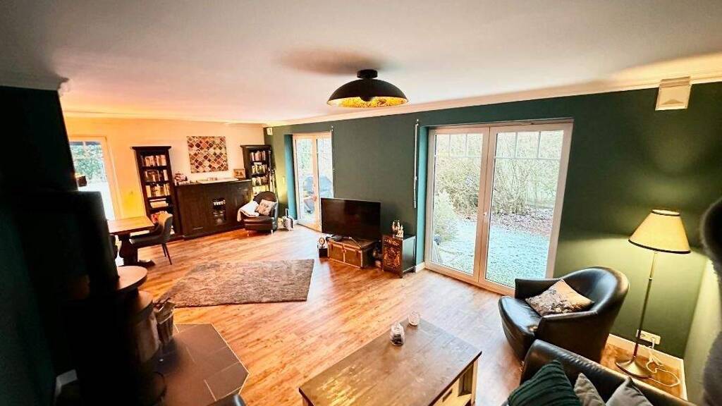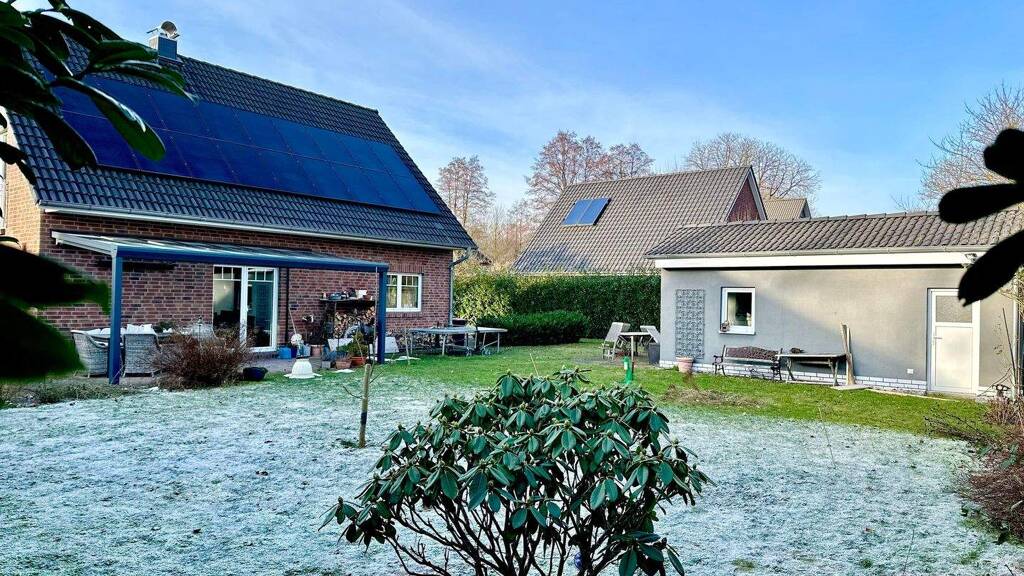 Die Fenster sind 4-fach und isolierverglast. Bei der Heizung handelt es sich um ein Hybrid-System aus Erd-/ und Luftwärmepumpe, sodass keine fossilen Brennstoffe für das Haus notwendig sind. Des weiteren ist eine 10 Kilowatt Photovoltaikanlage auf dem Dach installiert, die einen großen Teil der benötigten Energie der Immobilie über die Sonne generiert. Überschüssige Energie wird u.a. in einen vorhanden Akkuspeicher geladen. Eine Wallbox-Ladesäule rundet das fortschrittliche Bild des schönen Einfamilienhauses ab.