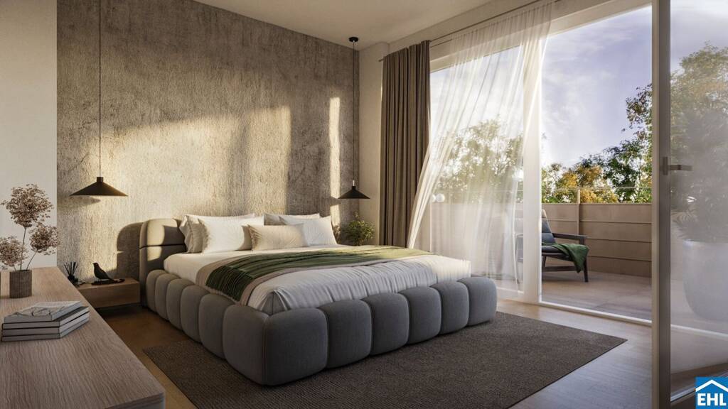 Alle Einheiten verfügen über traumhafte Freiflächen - von einladenden Balkonen über idyllische Gärten bis hin zu exklusiven Dachterrassen mit beeindruckendem Grünblick - die eine harmonische Verbindung zwischen Innen- und Außenraum schaffen.