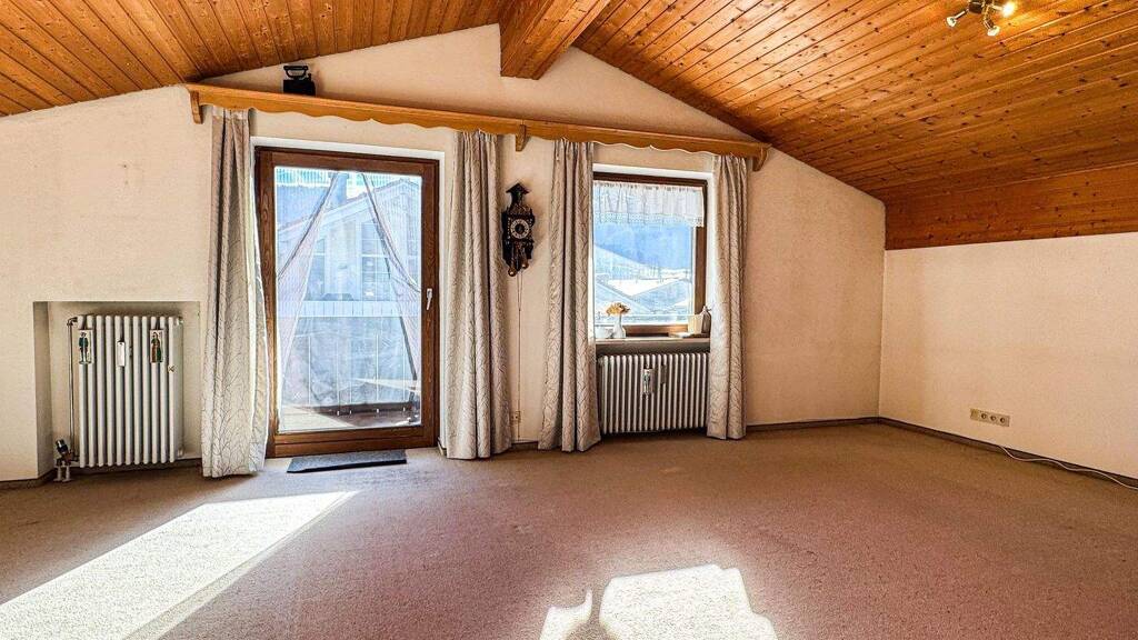 Inmitten der malerischen Voralpenlandschaft des Chiemgaus befindet sich diese großzügige und lichtdurchflutete Dachgeschosswohnung in ruhiger Ortsrandlage von Unterwössen. Mit einer Wohnfläche von 90,39 m² vereint die Wohnung behaglichen Wohnkomfort mit alpinem Flair.