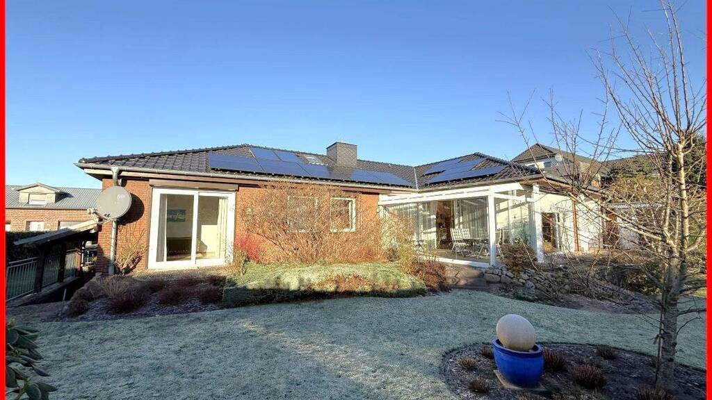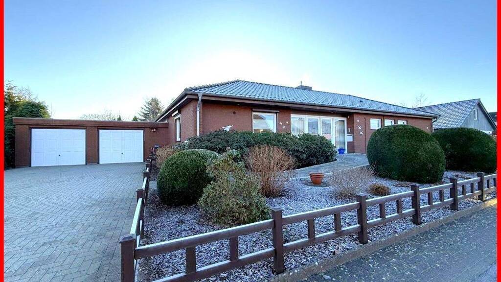 Der teilunterkellerte Bungalow befindet sich in schöner, ruhiger und zugleich zentraler Lage von Kropp und bietet damit eine ideale Kombination aus Erholung und Alltagstauglichkeit. Umgeben von einer gepflegten Nachbarschaft und viel Grün genießen Sie hier ein angenehmes Wohnumfeld mit hoher Lebensqualität. Der liebevoll angelegte Vorgarten ist geschmackvoll bepflanzt und durch einen kleinen Zaun eingefasst, was dem Haus bereits von außen einen einladenden Charakter verleiht. Die gepflasterte Auffahrt führt zur Doppelgarage und unterstreicht den gepflegten Gesamteindruck des Anwesens. Der rückwärtige Garten ist mit viel Sorgfalt gestaltet und bietet dank hoher Hecken einen angenehmen Sichtschutz zu den Nachbargrundstücken. Hier eröffnen sich vielfältige Möglichkeiten zur Entspannung, zum Spielen oder für gesellige Stunden im Freien. In dieses harmonische, rund 902 m² große Grundstück fügt sich der gepflegte Winkelbungalow aus dem Baujahr 1975 stimmig ein und bietet mit rund 152 m² Wohnfläche ein großzügiges und komfortables Wohnen auf einer Ebene. Bereits beim Betreten des Hauses empfängt Sie eine große, helle und einladende Diele, die den Mittelpunkt der Raumerschließung bildet und ein angenehmes Wohngefühl vermittelt. Das geräumige Wohn- und Esszimmer überzeugt durch seine besondere Architektur mit einer tiefer gelegten Kaminecke. Das Raumangebot umfasst insgesamt vier Zimmer, darunter ein ruhiges Schlafzimmer mit separater Ankleide sowie zwei weitere Zimmer, die sich ideal als Kinder-, Gäste- oder Arbeitszimmer eignen. Ergänzt wird der Wohnbereich durch eine separate Küche, ein Tageslicht-Duschbad, ein Gäste-WC sowie einen praktischen Hauswirtschaftsraum. Abgerundet wird dieses Angebot durch einen hochwertigen Kaltwintergarten, der den Wohnraum auf angenehme Weise erweitert und den Blick in den liebevoll gestalteten Garten freigibt.