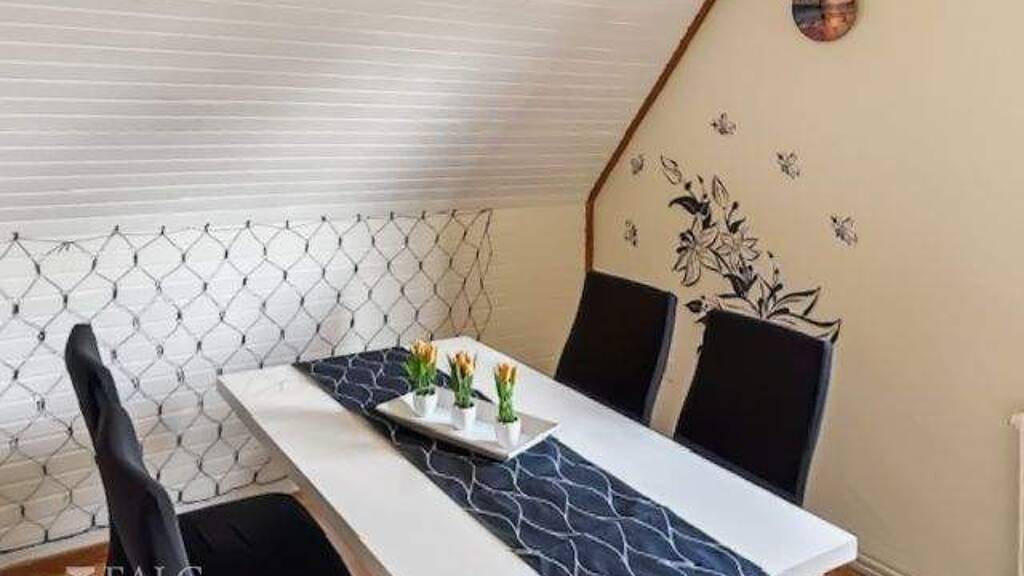 Über eine Treppe erreichen Sie das Obergeschoss, wo sich drei weitere Zimmer befinden. Diese eignen sich hervorragend als Schlafzimmer für die Familie. Die Räume sind hell und bieten ausreichend Platz für individuelle Gestaltungsmöglichkeiten. Diese Wohneinheit ist zurzeit vermietet.