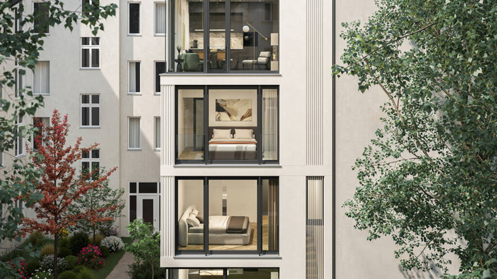 Grüne Oase mitten in der Stadt Der gesamte Innenhof wird komplett neu angelegt und verstärkt das Gefühl, in seinem eigenen kleinen Kosmos zu leben.