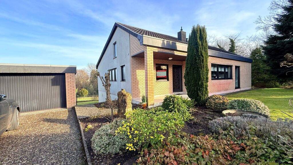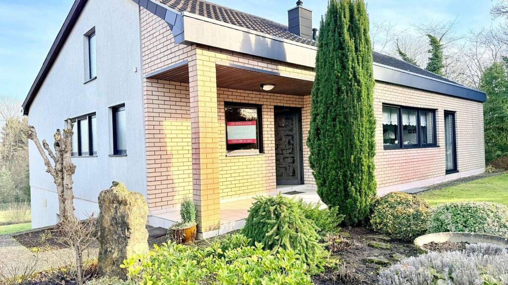 Das im Jahr 1984 errichtete Einfamilienhaus beeindruckt durch seine großzügige Wohnfläche von ca. 205 m² und steht auf einem weitläufigen Grundstück von rund 1.210 m², am ruhigen Ende einer Straße ohne Durchgangsverkehr. Die Immobilie verfügt über eine unterkellerte Doppelgarage, die praktischen Stauraum bietet und sich ideal als Lager für Gartengeräte nutzen lässt. Erdgeschoss Beim Betreten des Hauses gelangen Sie zunächst in einen offenen Eingangsbereich mit Garderobe, der alle Räume dieser Ebene miteinander verbindet. Direkt hieran angegliedert findet man das Gäste-WC und eine praktische Abstellkammer. Das gemütliche Schlafzimmer liegt mit Blick in den angrenzenden Wald und befindet sich direkt neben dem Badezimmer. Die Küche, zur Vorderseite des Hauses orientiert, ist ideal an das separierte Esszimmer angebunden und bietet kurze Wege im Alltag. Den Mittelpunkt der Etage bildet das lichtdurchflutete Wohnzimmer mit großen Fensterflächen und einem herrlichen Naturblick. Von hier als auch vom Flur gelangt man auf den großzügigen, L-förmigen Balkon, der sich entlang der Gebäuderückseite erstreckt und ideal für entspannte Stunden im Freien geeignet ist. Untergeschoss Das freiliegende Untergeschoss ist sowohl über das Treppenhaus als auch über eine separate Haustür zugänglich. Auf dieser Ebene befinden sich drei helle Zimmer mit direktem Zugang zum Garten, ein Badezimmer sowie zwei praktische Abstell- bzw. Kellerräume. Ebenfalls untergebracht ist der Heizungsraum, ausgestattet mit einer Gasbrennwertanlage aus dem Jahr 2015. Dank des eigenen Zugangs zum Garten und der geschickten Raumaufteilung bietet das Untergeschoss vielfältige Nutzungsmöglichkeiten. Etwa als Bereich für Gäste, Arbeiten von Zuhause, Hobbyräume oder als potenzielle Wohneinheit mit eigenem Wohnabschnitt. Mit seinen flexiblen Grundrissen, den Nutzungsmöglichkeiten über zwei wohnfähige Ebenen und der unverbaubaren Naturlage ist dieses Haus eine super Gelegenheit. Ideal für Familien, Mehrgenerationenwohnen und alle, die großzügiges Wohnen im Grünen schätzen.