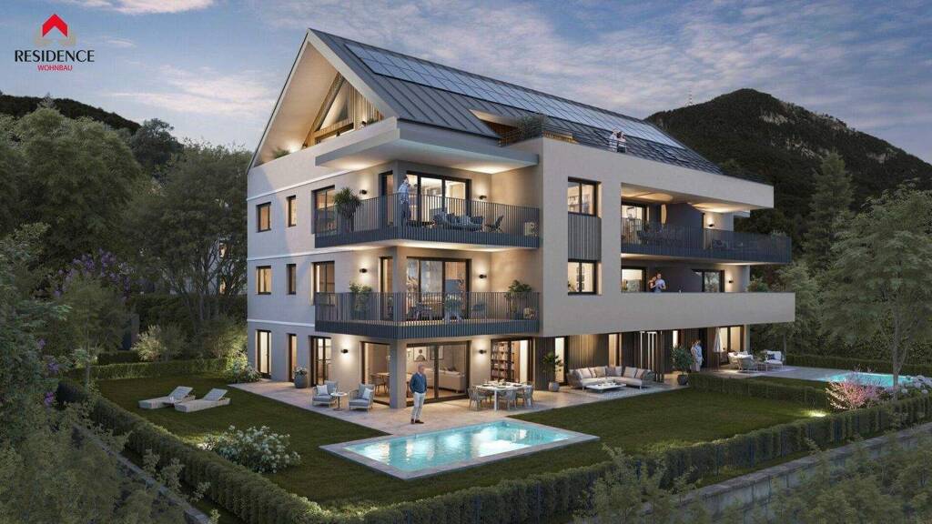 Bei den Bauprojekten von RESIDENCE Wohnbau setzt man auf Hochwertigkeit und Langlebigkeit. Diese Philosophie ist schon beim ersten Schritt in den Wohnraum spürbar, wenn man den edlen Landhausdiele-Parkettboden aus Eiche betritt. In den zeitlos schönen Sanitärräumen sind großformatige Fliesen aus Feinsteinzeug verlegt. Die Bäderausstattung ist geprägt von Qualitätsmarken und modernem Design. Dreifach verglaste Holz/Alu-Isolierfenster garantieren beste Wärmeisolierung und herrliche Ruhe. Die Räume sind angenehm hell durch zahlreiche Fenster und Glaspendeltüren im Inneren. Auch das Lichtkonzept kann sich sehen lassen mit integrierten Spots in Vorräumen, Gängen und Sanitärräumen sowie auf überdachten Terrassen. Eine elektrische Raffstorebeschattung bietet in den Aufenthaltsräumen effektiven Schutz vor Hitze. Mit der Fußbodenheizung mit Einzelraumsteuerung (in Bad- und Wohnräumen) sind effizientes Heizen und ein optimales Raumklima ein Kinderspiel.