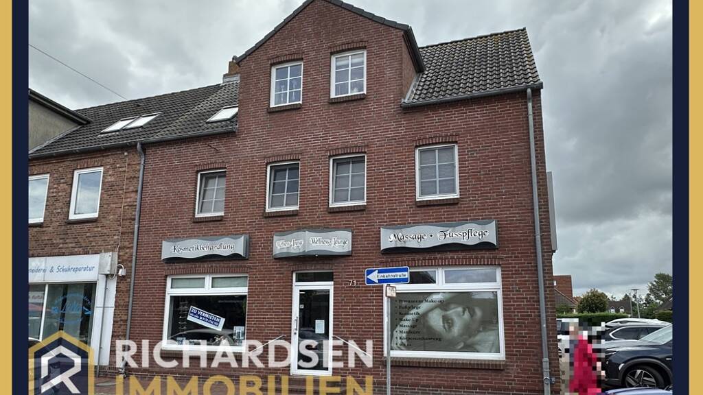 Eine Gewerbeimmobilie in Toplage in der Niebüller Hauptstraße. Niebüll bietet als Zentralort eine gute Infrastruktur Die gute Verkehrsanbindung mit Bus, Bahn und Auto und die Stellplätze direkt am Haus, ermöglichen einen problemlosen Weg in die Niebüller Einkaufsstraße.