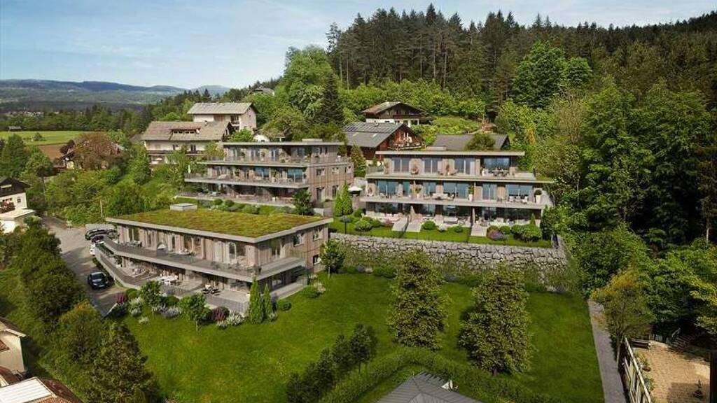 Eingebettet in ein atemberaubendes Bergpanorama, bestehend aus Gerlitzen, Mittagskogel und Dobratsch, zählt der Faaker See wohl zu einem der schönsten Seen Österreichs. Das türkisblaue, glasklare Wasser des Faaker Sees mit herrlicher Badetemperatur wird oft als die "Karibik Kärntens" bezeichnet. In nur zwei Gehminuten erreichen Sie das großzügige Seebad "Greenbeach", wo Sie mit Ihrer Familie sonnige Tage mit viel Badespaß erleben werden. Die Wohnungen bieten einen unvergleichlichen Ausblick, der Sie in die natürliche Schönheit des Sees eintauchen lässt. Genießen Sie den Zauber unvergesslicher Abendstunden, lassen Sie die warmen Farbtöne des Himmels auf sich wirken, während die Sonne langsam hinter dem Horizont verschwindet und den Faaker See in ein magisches Licht taucht. Die dezente Holzfassade verbindet sich perfekt mit der umliegenden Natur und die Photovoltaikanlage sorgt für eine umweltbedachte Energieerzeugung und reduziert die Betriebskosten.