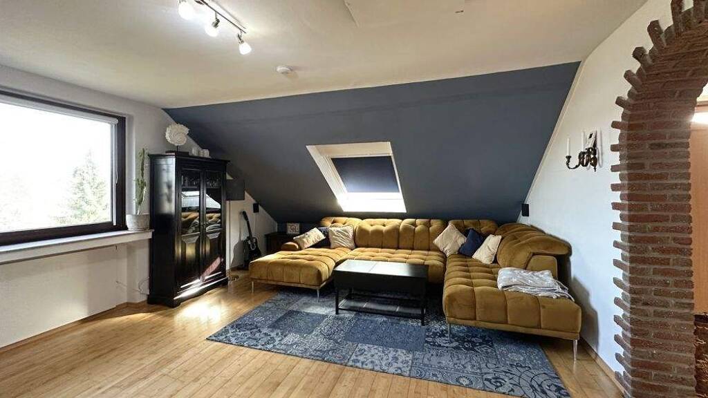 Diese modernisierte Dachgeschosswohnung überzeugt durch eine großzügige und zugleich gemütliche Raumaufteilung in einem gepflegten Mehrfamilienhaus auf einem ca. 2.729 m² großen Grundstück. Der gelungene Grundriss umfasst ein helles Wohnzimmer mit Kamin, ein angrenzendes Esszimmer mit kleinem Balkon und schönem Weitblick, drei gut geschnittene Schlafzimmer, eine separate Küche sowie einen praktischen Abstellraum mit Waschmaschinenanschluss.