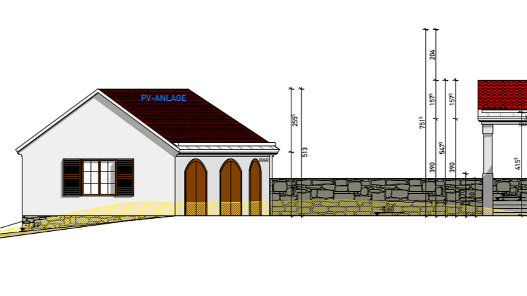 WIDMUNG und BEBAUUNG: WA (Wohngebiet-allgemein), Verbauung 0,2-0,4. Eine Entwurf-Studie aus dem Jahr 2018 liegt vor.
