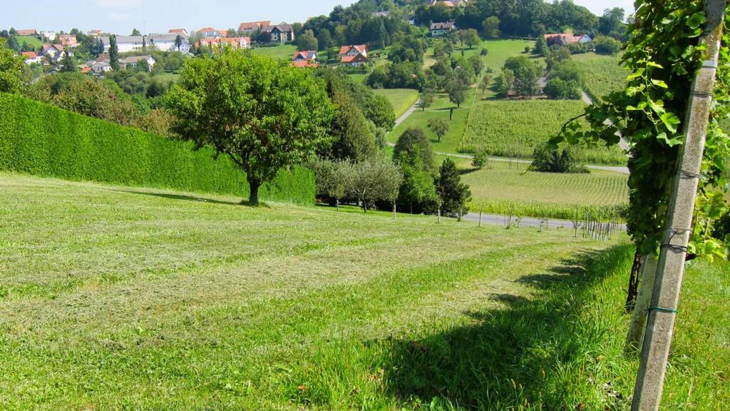 Die Grundstücke liegen mitten im fruchtbaren steirischen Vulkanland, einem Obst- und Weinbaugebiet in der steirischen Thermenregion mit herrlichem Ausblick zum Himmelsberg. Die Liegenschaft im Gesamtausmaß von 1.444m², besteht aus einer Parzelle von 851m² (ca. 16,5m x 51,5m), am oberen Hügel und einer Weiteren mit 593m² (ca. 15,5m x 38m), unterhalb angrenzend. Beide Grundstücke wären unabhängig voneinander bebaubar, Wasseranschlüsse zur Bewässerung sind jeweils vorhanden.