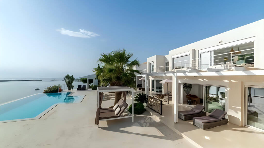 Im ersten Stock setzt sich der Luxus in einem offenen Raum mit Küche, Ess- und Wohnzimmer fort. Von den Balkonen geniessen Sie spektakuläre Ausblicke auf die malerische Bucht von Elounda. Zusätzlich bieten zwei weitere Schlafzimmer, beide mit eigenem Badezimmer, sowie zwei separate Toiletten höchsten Wohnkomfort.