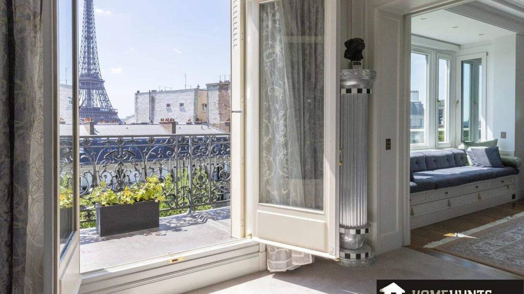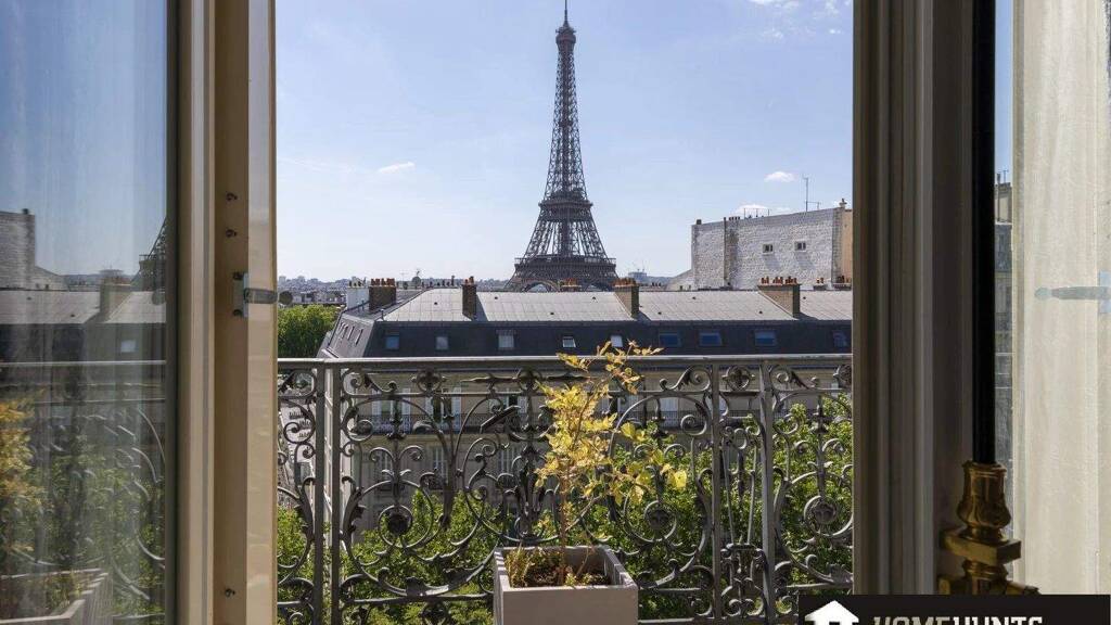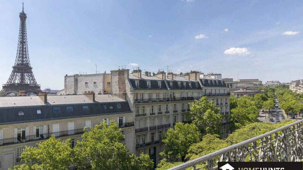 Paris 16th - In the heart of the prized Iena district, on the 5th and top floor by elevator of an early 20th century building of the highest standing, this elegant 333 m2 reception apartment boasts an exceptional view of the Eiffel Tower and numerous Parisian monuments.