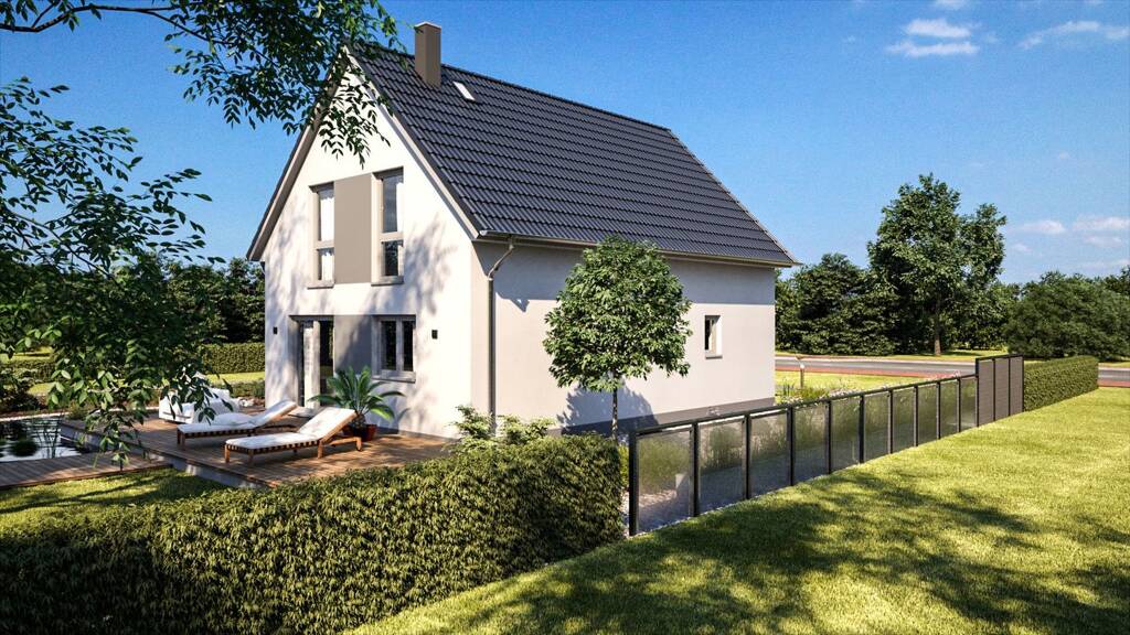 Der lichtdurchflutete Wohn- und Essbereich ist das Herzstück des Hauses und bietet viel Platz für Eure persönliche Einrichtung. Die doppelflügelige Terrassentür sorgt für einen nahtlosen Übergang zur Terrasse – perfekt für gesellige Abende im Freien. Ein besonderes Highlight ist die praktische Speisekammer , die direkt an die Küche grenzt, und den Küchenalltag erleichtert. Im Obergeschoss erwarten Euch ein geräumiges Schlafzimmer sowie zwei vielseitige Kinder- oder Arbeitszimmer . Das entspannende Badezimmer besticht durch bodentiefe Fenster , die für eine helle und freundliche Atmosphäre sorgen. Weitere Grundrissvarianten sind nach Absprache möglich – gestaltet Euer Traumhaus ganz nach Euren Vorstellungen!