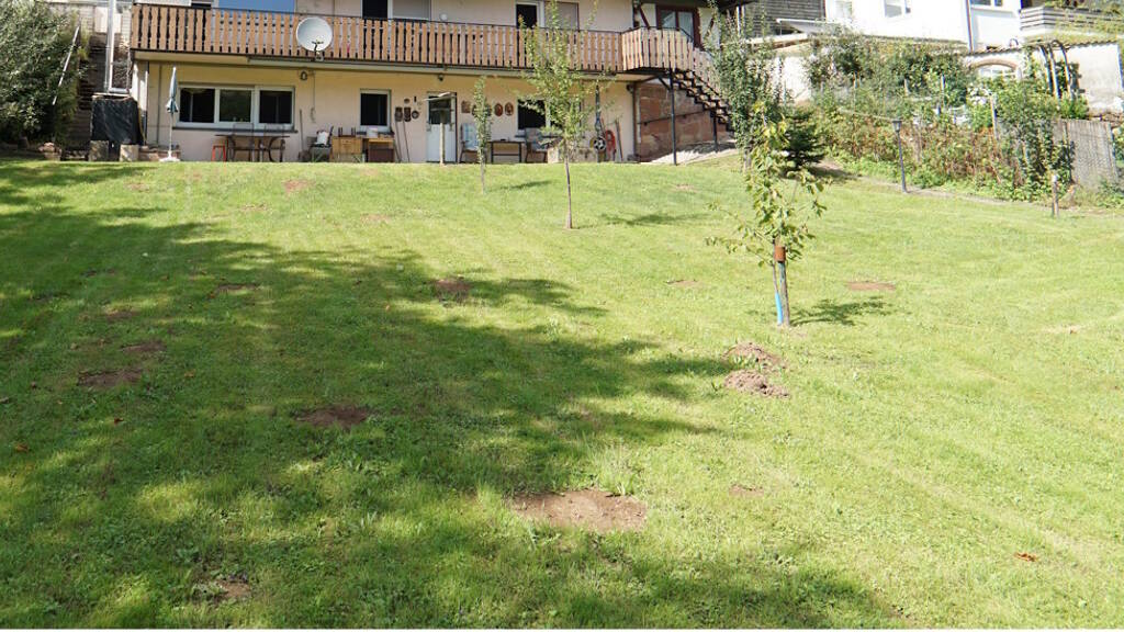 Der Garten ist nahezu eben und bietet viel Platz zum Anbauen diverser Obst- und Gemüsesorten oder zum Spielen der Kinder.